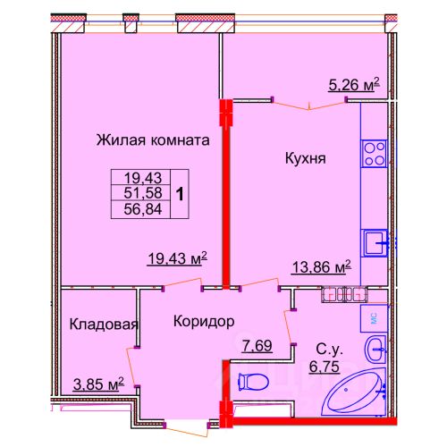 56,84 м²