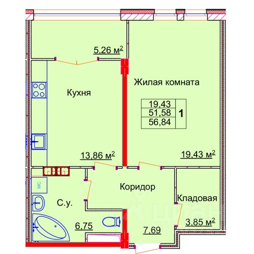 56,84 м²