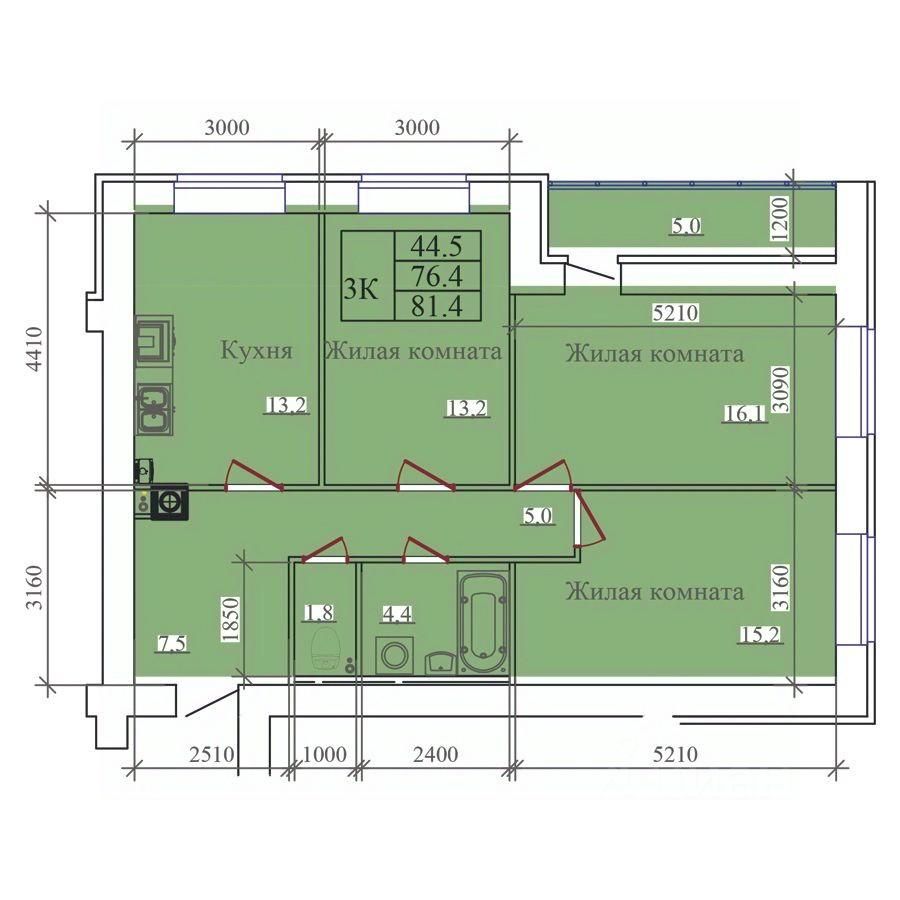 Общая площадь81,4 м²