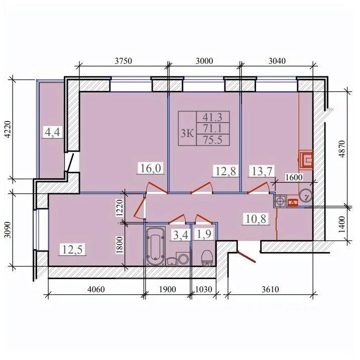 Общая площадь75,5 м²
