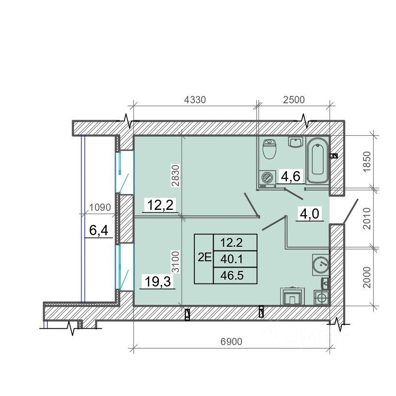 Общая площадь46,5 м²