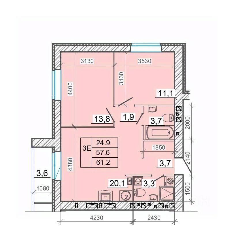 Площадь кухни20,1 м²