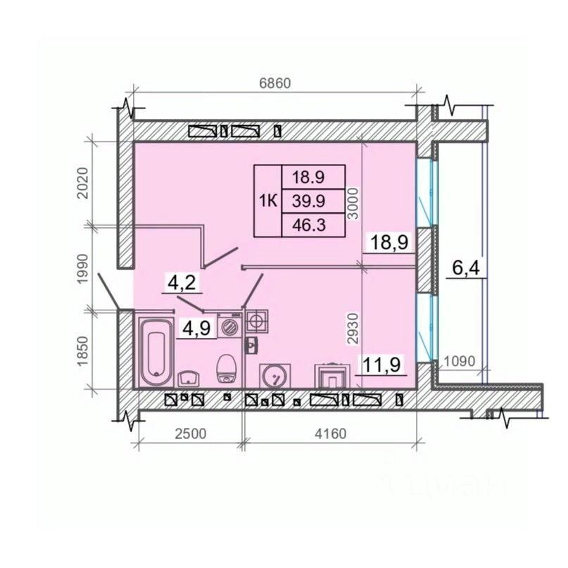 Общая площадь46,3 м²