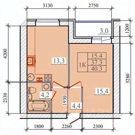 Общая площадь40,3 м²