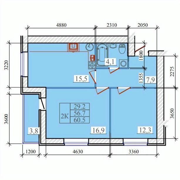 Общая площадь60,5 м²