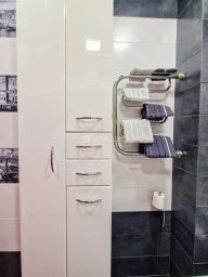Остается вся мебель и техника, на этаже есть кладовое помещение, отличный домофон, спутниковое и кабельное ТВ, WI-FI, диодное регулируемое освещение, сигнализация.