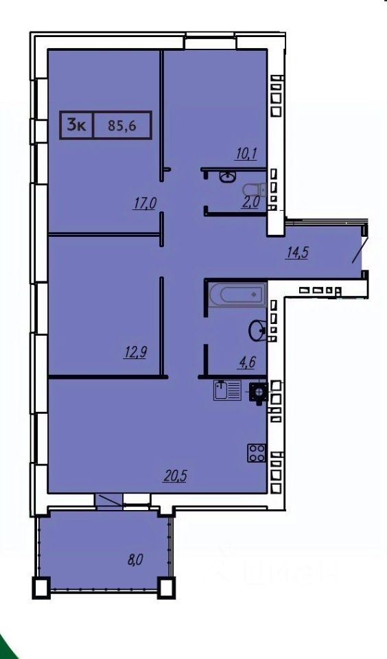 Общая площадь85,6 м²