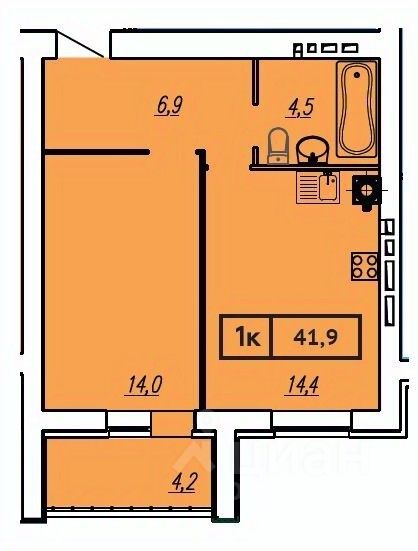Общая площадь41,9 м²