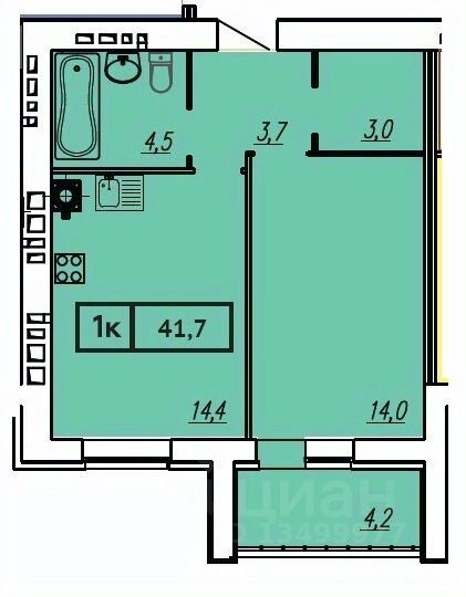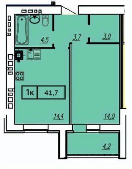 Общая площадь41,7 м²