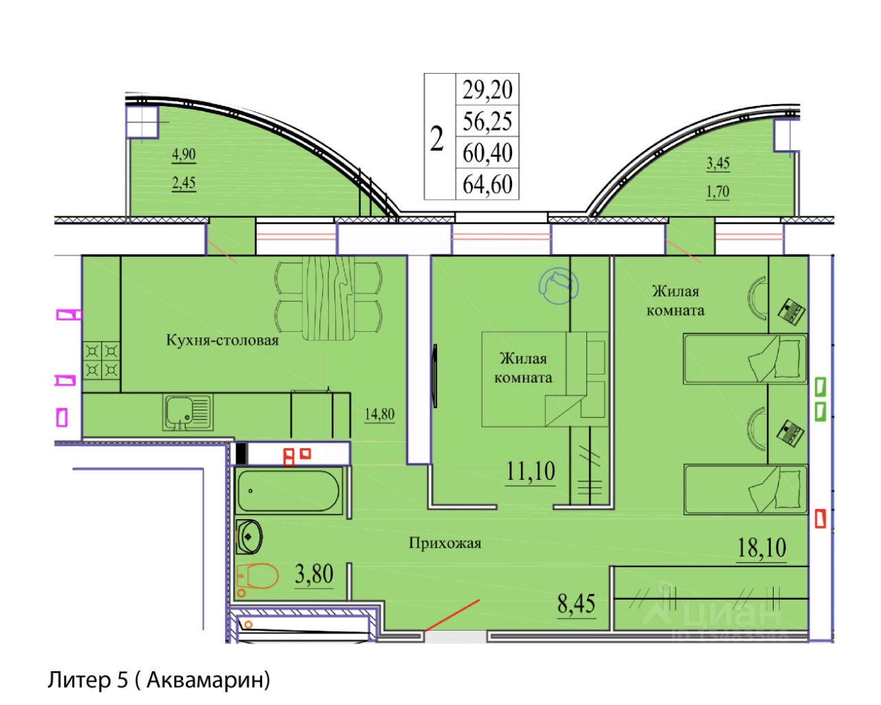 64,6 м²