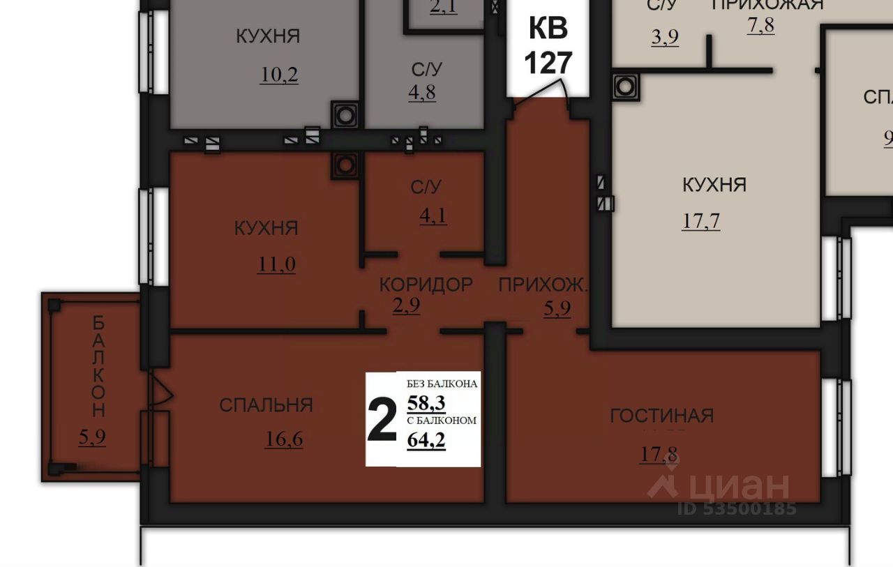 Продаётся 2-комнатная квартира в строящемся доме (Строение 5 (13 этап)), срок сдачи: II-кв. 2028, общей площадью 64.2 кв.м., на 7 этаже. ЖК "Новая Дерябиха 3" - новейший проект для комфортной жизни.