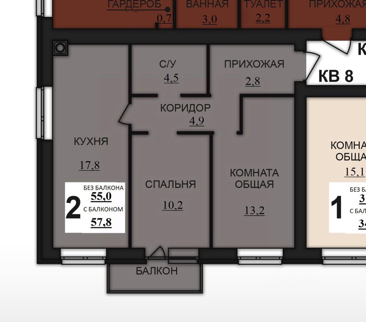 Продаётся 2-комнатная квартира в строящемся доме (Строение 5 (12 этап)), срок сдачи: II-кв. 2028, общей площадью 57.8 кв.м., на 2 этаже. ЖК "Новая Дерябиха 3" - новейший проект для комфортной жизни.