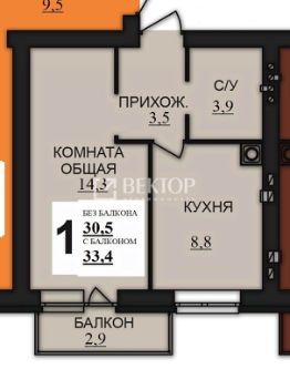 Продам 1 комнатную квартиру в жилом комплексе Дерябиха 3. Общая площадь 33,4, жилая 14,3, просторная кухня 8,8, широкий балкон 2,9.