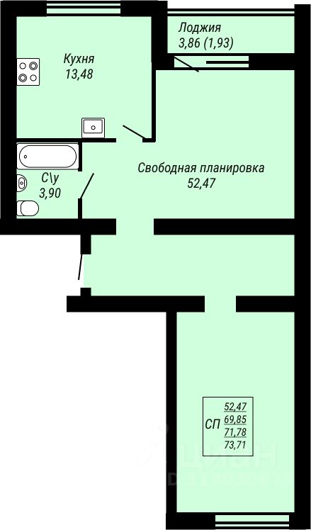 Продаётся 1-комнатная квартира в строящемся доме (1 очередь), срок сдачи: III-кв. 2026, общей площадью 73.71 кв.м., на 1 этаже. Новый жилой комплекс "Юбилейный" от застройщика ООО СЗ "Славянский Дом Бета" расположен в г. Иваново на ул. Куконковых.