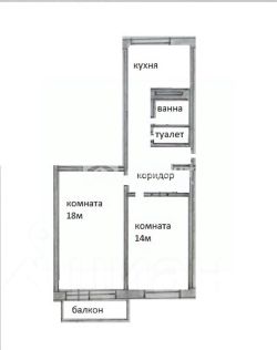 Общая площадь 46 метров, комнаты 18+14 метров.