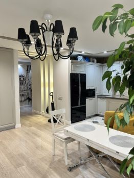 Продается просторная 4-х комнатная квартира в центре города с дизайнерским ремонтом, кухней-гостиной 37,6 кв.м., со встроенной мебелью и техникой. Три раздельные комнаты, гардеробная, 2 сан.узла с душевой кабиной и гидромассажной ванной, просторная лоджия.
