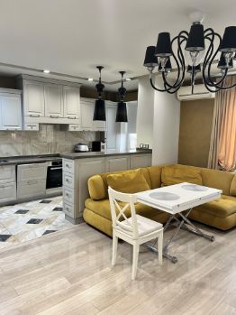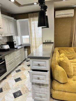 Квартира оборудована всей необходимой встроенной мебелью и техникой, остается практически все, за исключением некоторых позиций.
