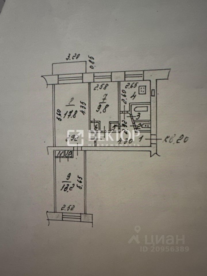 Общая площадь - 58,6 м
