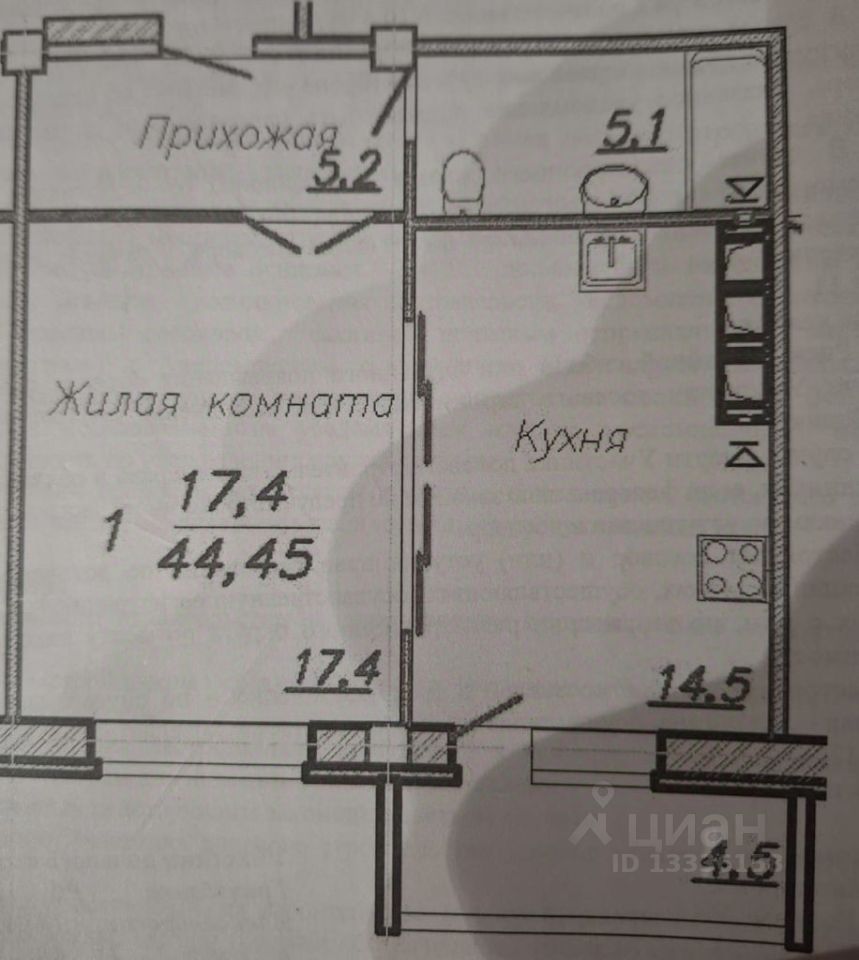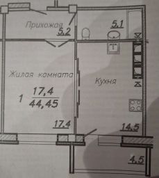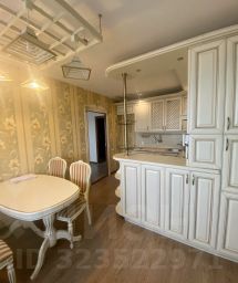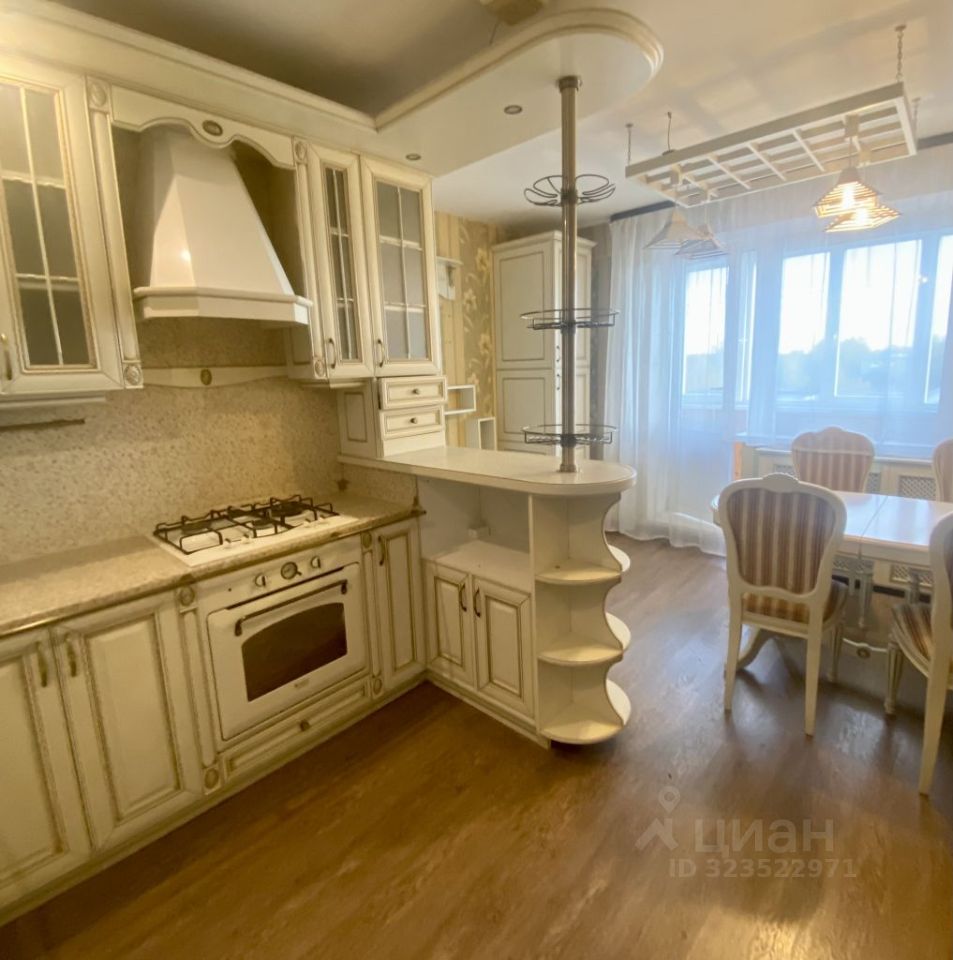 В квартире остается встроенный кухонный гарнитур, который разделяет большую кухню 14,5 кВ.м на рабочую зону и столовую с выходом на застеклению лоджию.