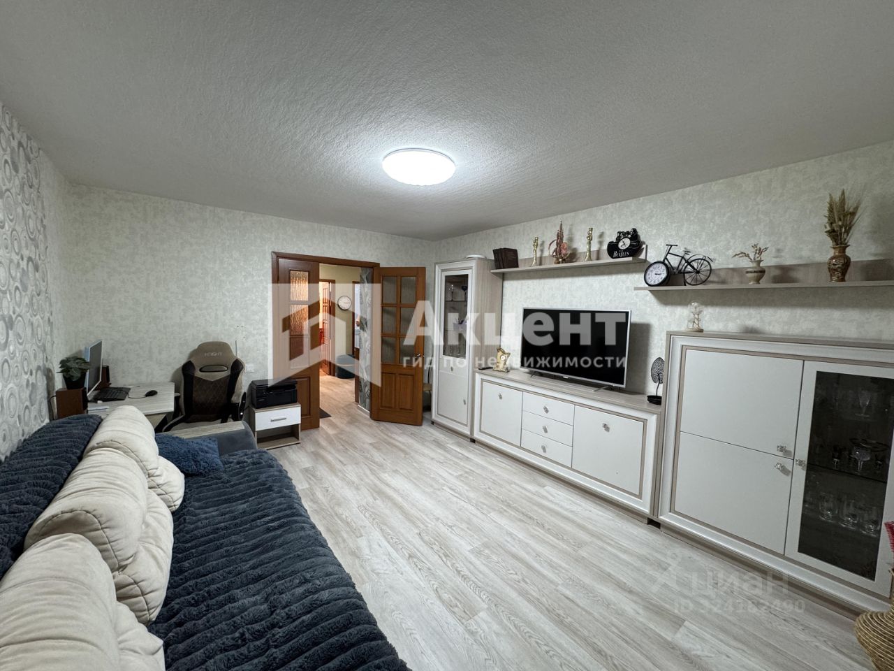 - Планировка включает в себя светлую гостиную, две комфортные спальни и отдельную кухню. Все комнаты имеют окна, выходящие на солнечную сторону, что создает приятную атмосферу и наполняет пространство естественным светом.
