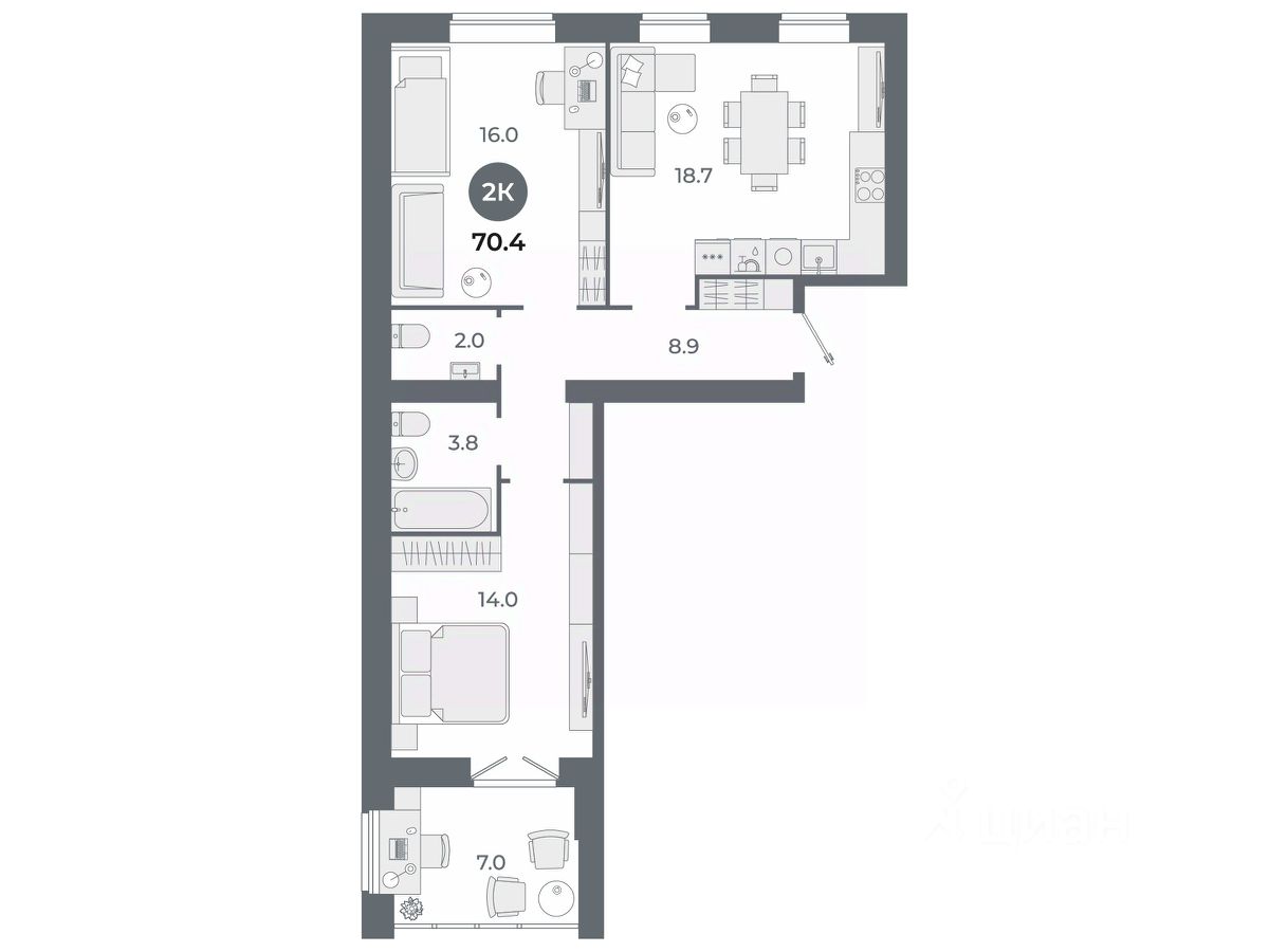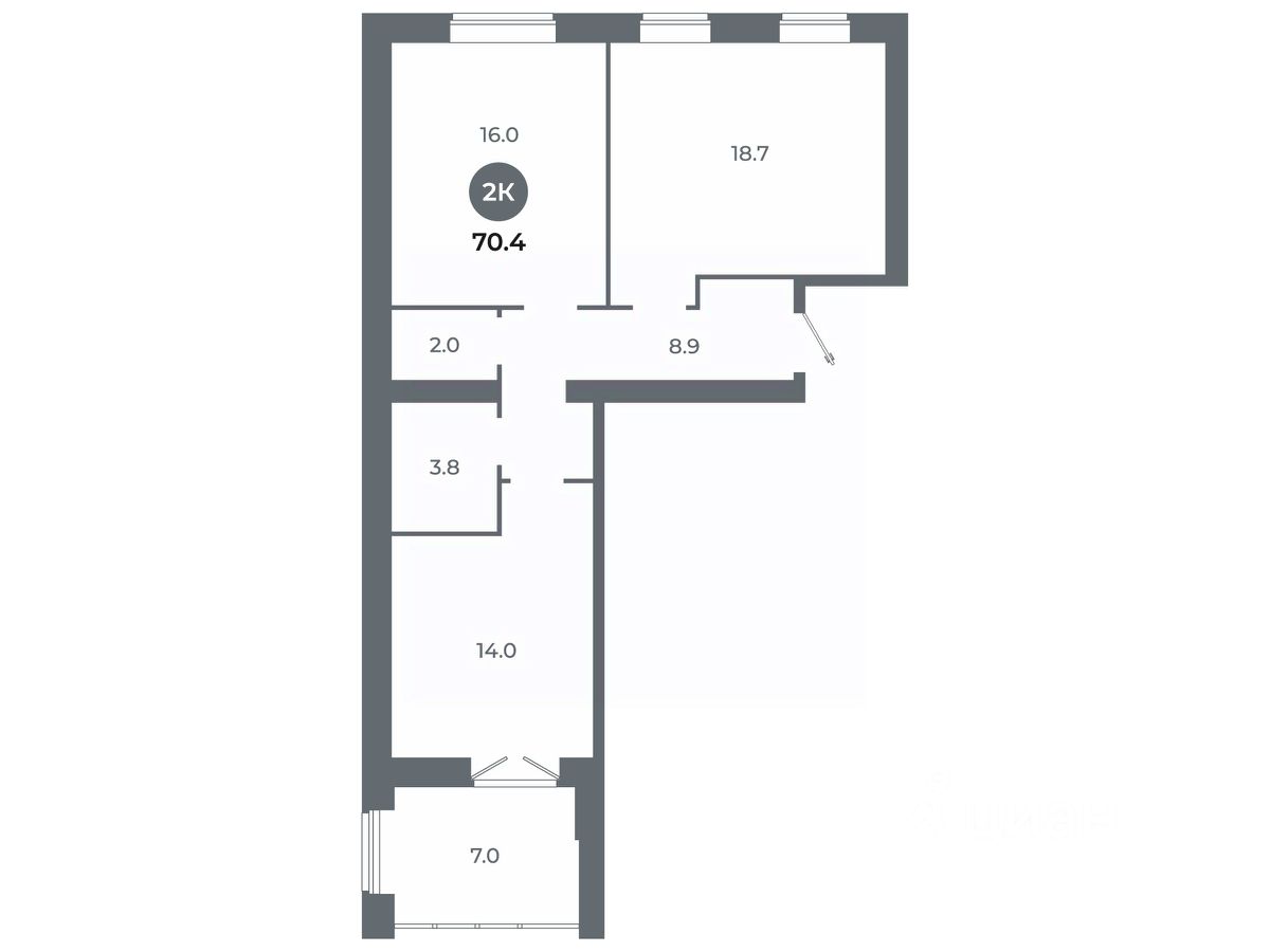 Квартира свободной планировки, 70,4 м²