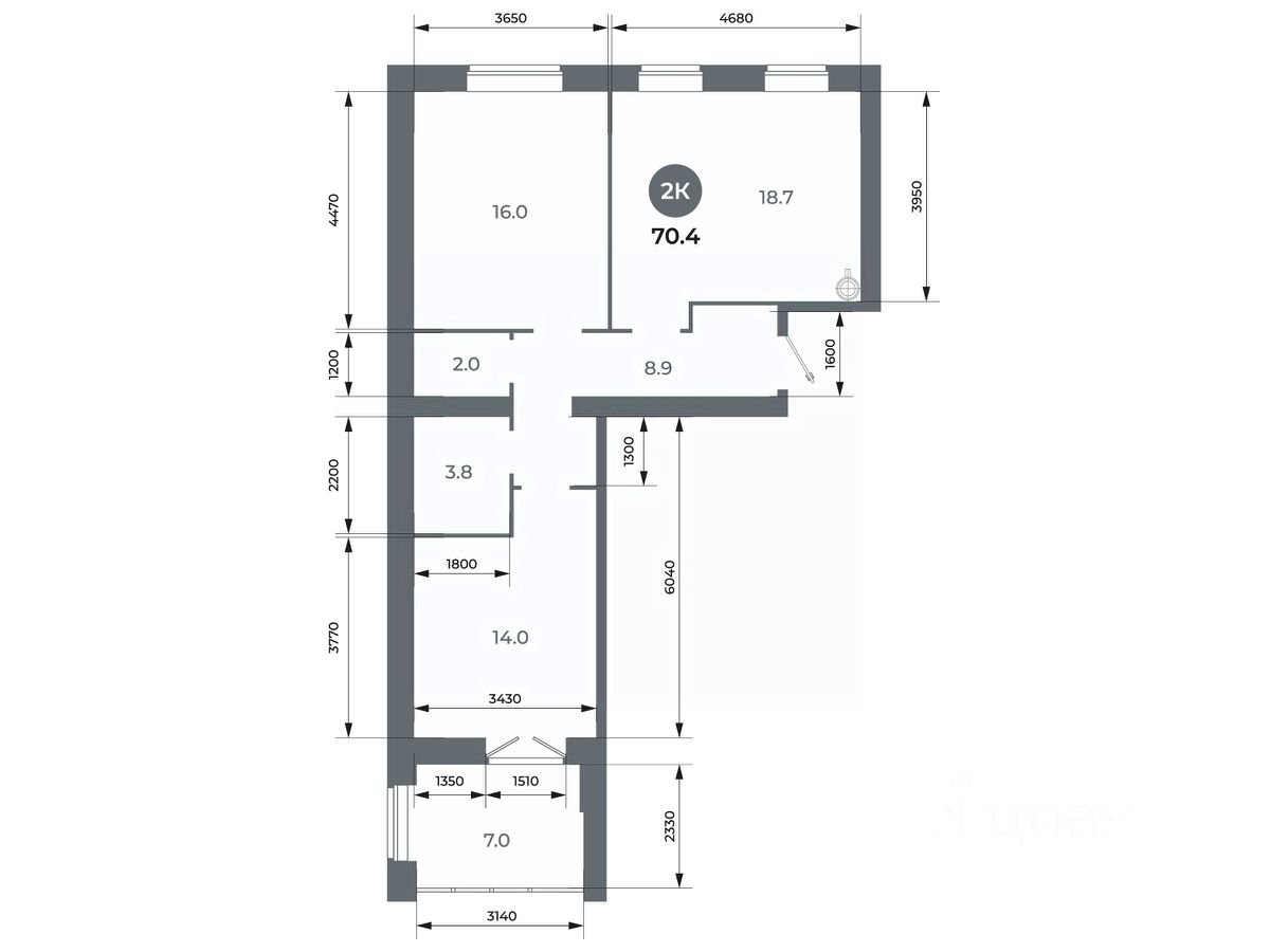 Общая площадь70,4 м²