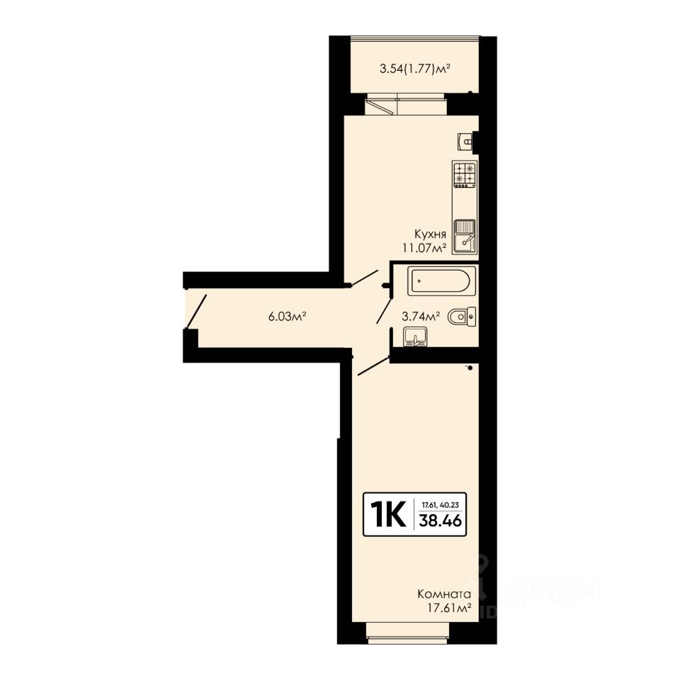 Общая площадь38,46 м²