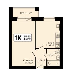 Общая площадь36,99 м²