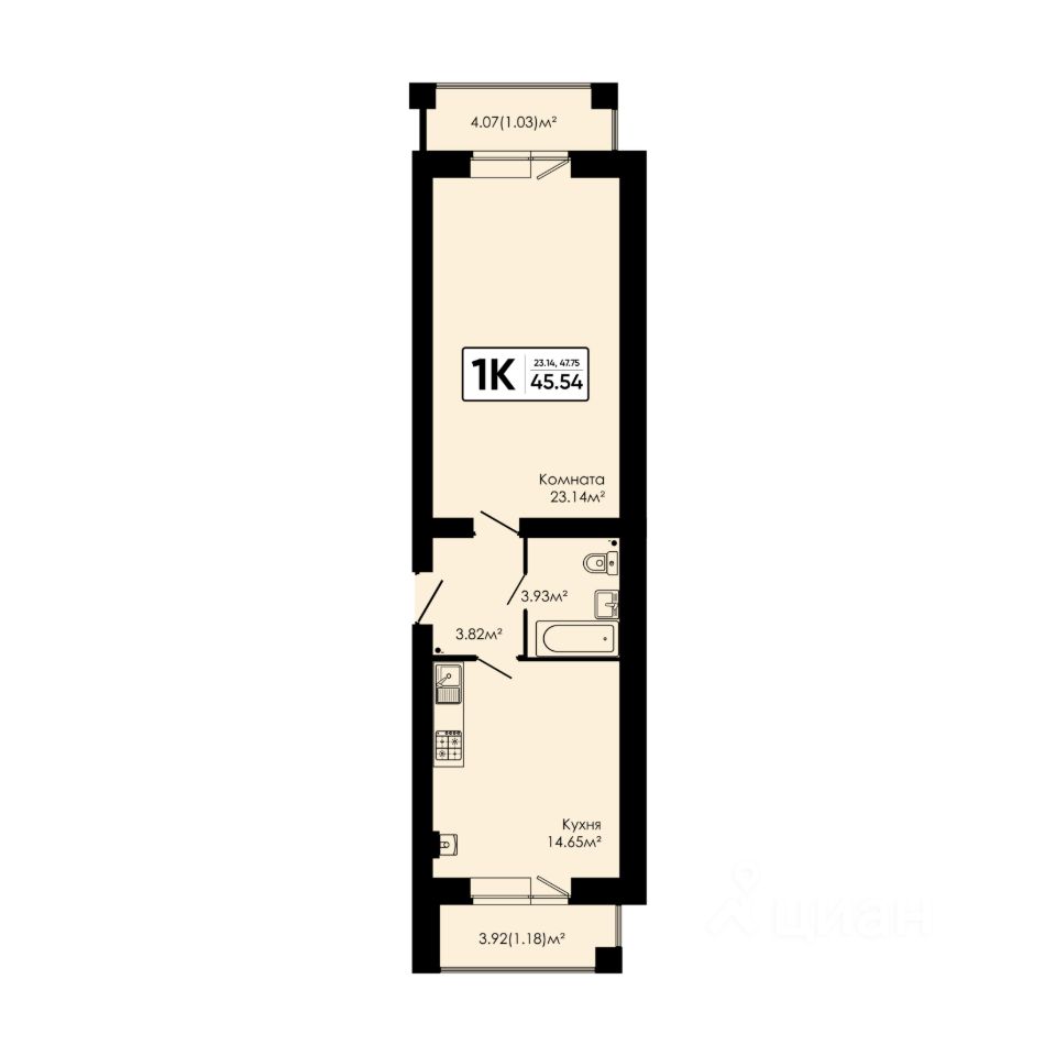Жилая площадь23,1 м²