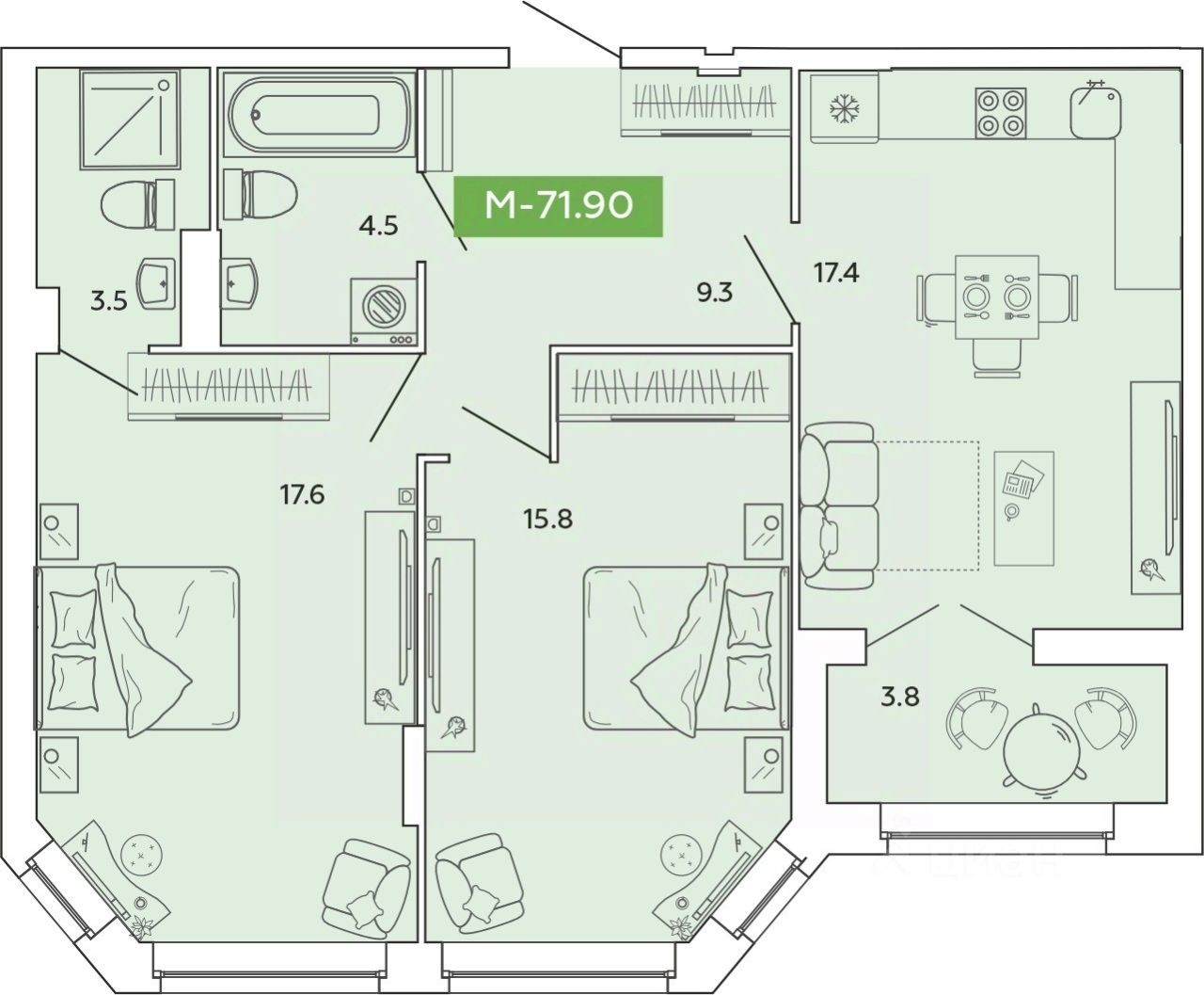 71,9 м²