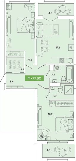77,8 м²