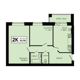 Общая площадь54,96 м²