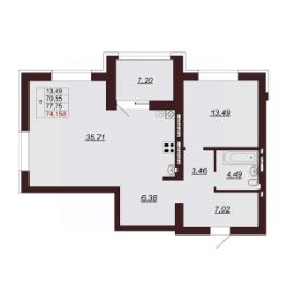 Продаётся 2-комнатная квартира в сданном доме (Дом 1), срок сдачи: II-кв. 2024, общей площадью 75 кв.м., на 6 этаже.