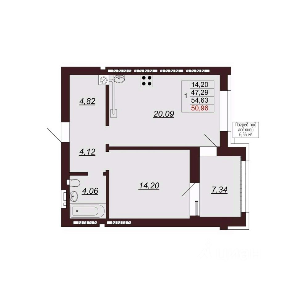 Продаётся 1-комнатная квартира в сданном доме (Дом 1), срок сдачи: II-кв. 2024, общей площадью 53 кв.м., на 9 этаже.