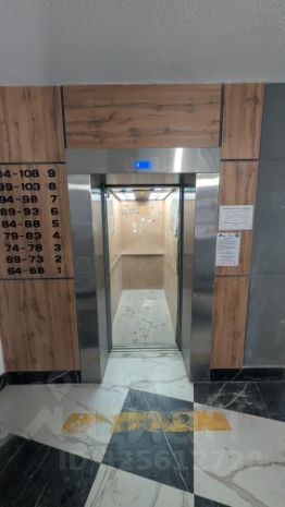 - Красивый подъезд в светло-серых тонах с большим зеркалом в лифте и в лобби первого этажа