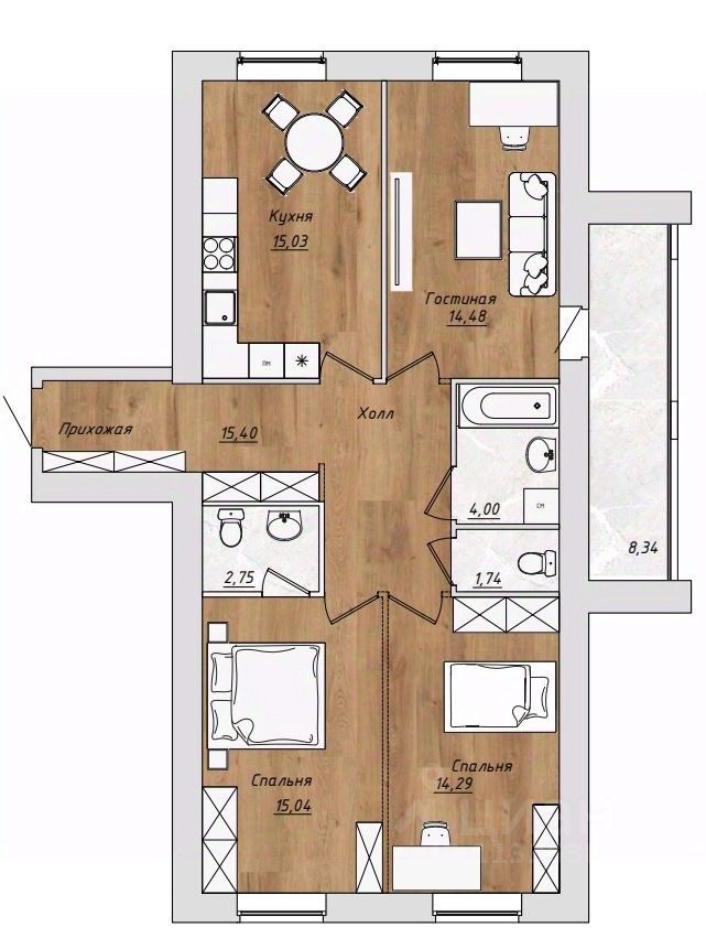 Продаётся 3-комнатная квартира в строящемся доме (Дом 1), срок сдачи: III-кв. 2027, общей площадью 86.9 кв.м., на 4 этаже. Новый жилой комплекс "Легенда" от застройщика "СДК Алмаз.Квартиры" расположен по адресу: г. Иваново, Инженерная улица.