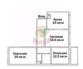 3 изолированные комнаты: 19/16,6/12,2 кв.м.