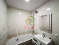 В квартире выполнен косметический ремонт, она полностью готова для проживания. В комнатах на полу уложен ламинат, в коридоре и на кухне - практичная плитка. Квартира очень теплая. Санузел в кафеле, установлена вся сантехника, современный душ, зеркало с подсветкой. Новые межкомнатные двери.