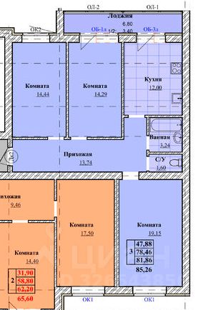 Общая площадь83,37 м²
