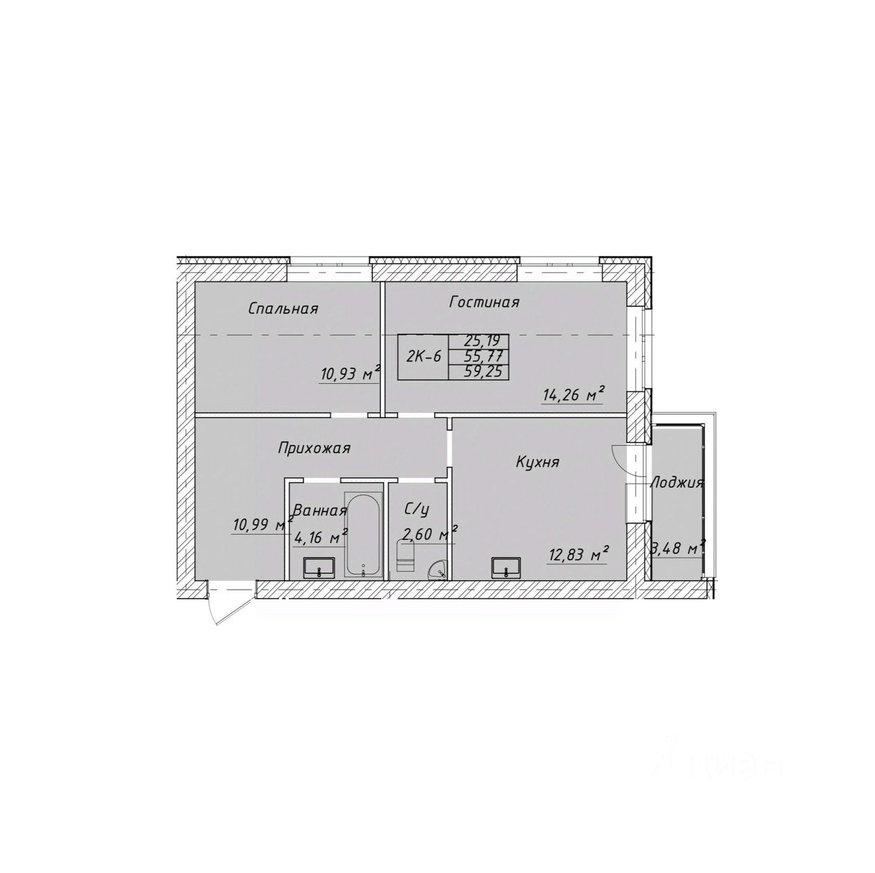 59,25 м²