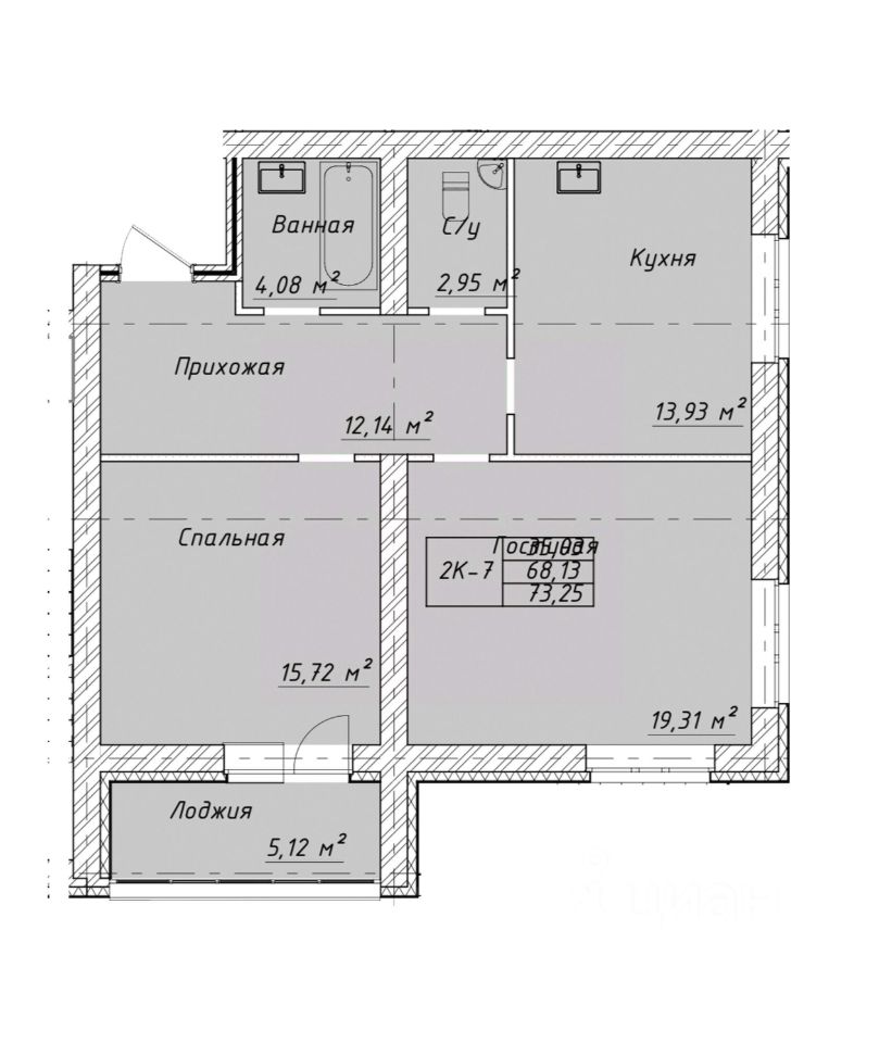 Продаётся 2-комнатная квартира в строящемся доме (Литер А), срок сдачи: IV-кв. 2026, общей площадью 73.25 кв.м., на 3 этаже. Новый жилой комплекс "Новая Дерябиха 4" от застройщика "ГК СМУ 1" расположен по адресу: Ивановский район, деревня Дерябиха.