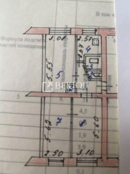 Общая площадь: ~57.41 м (кухня 6 м + комнаты 17 + 14.05 + 17.36 + кладовая 2 м).