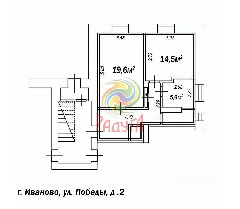 Агентство недвижимости "Радуга" предлагает к покупке 2-комнатную квартиру в кирпичном доме.