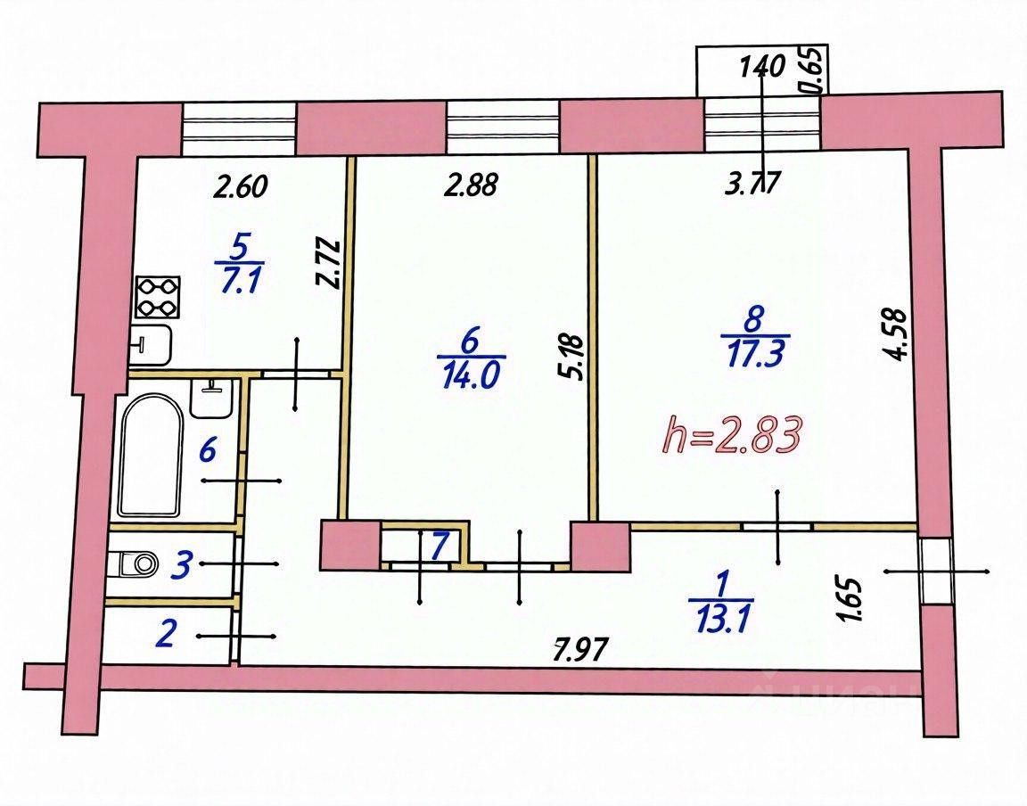 Площадь комнат 17,3 м.кв., 14 м.кв.