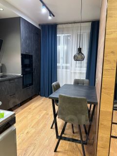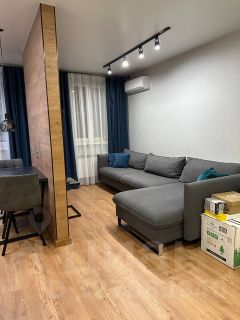 - Дизайнерский ремонт. При входе встроенный и вместительный шкаф-купе. Кухонный гарнитур (с уже встроенной техникой), мебель остается в подарок будущим владельцам.
