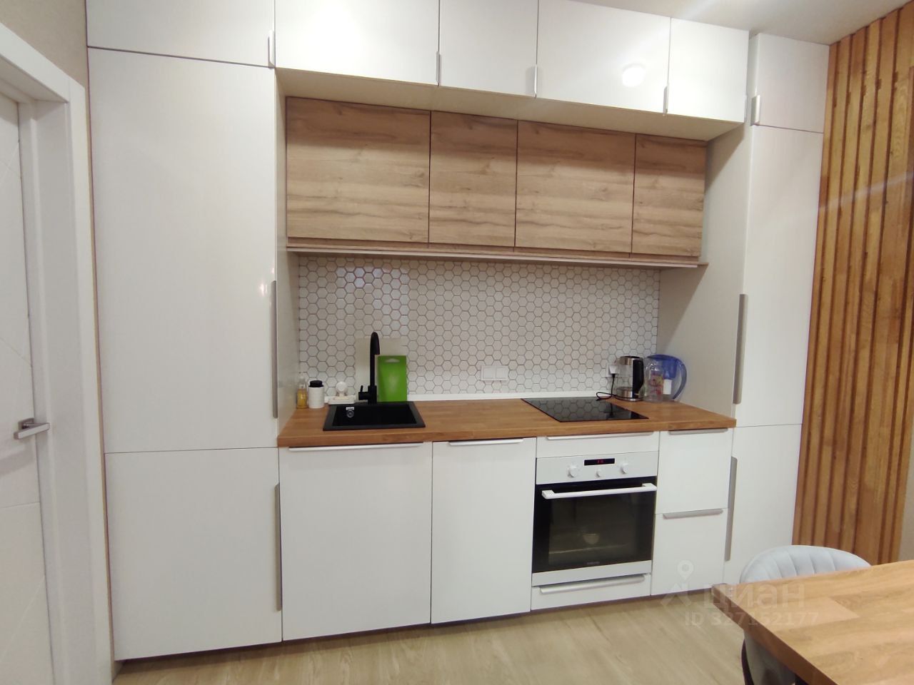 Много интересных элементов в квартире для зонирования, рейки, объемы.