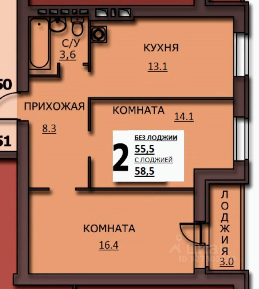 Продается 2-комн. квартира, 58,5 м²