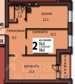 Общая площадь58,5 м²