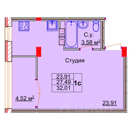 Общая площадь32,33 м²