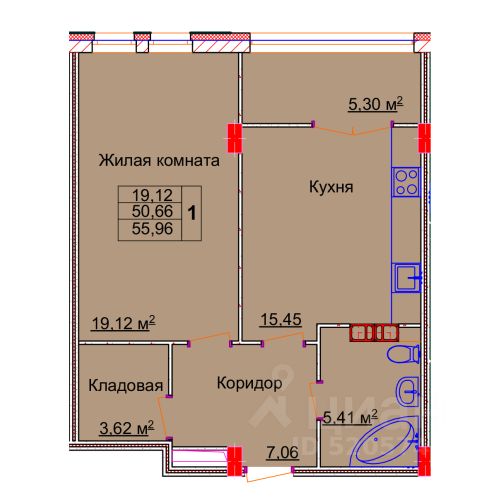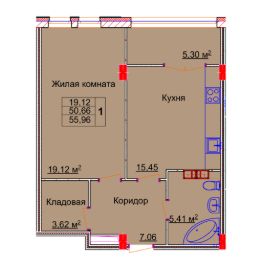 Продается 1-комн. квартира, 56,31 м²